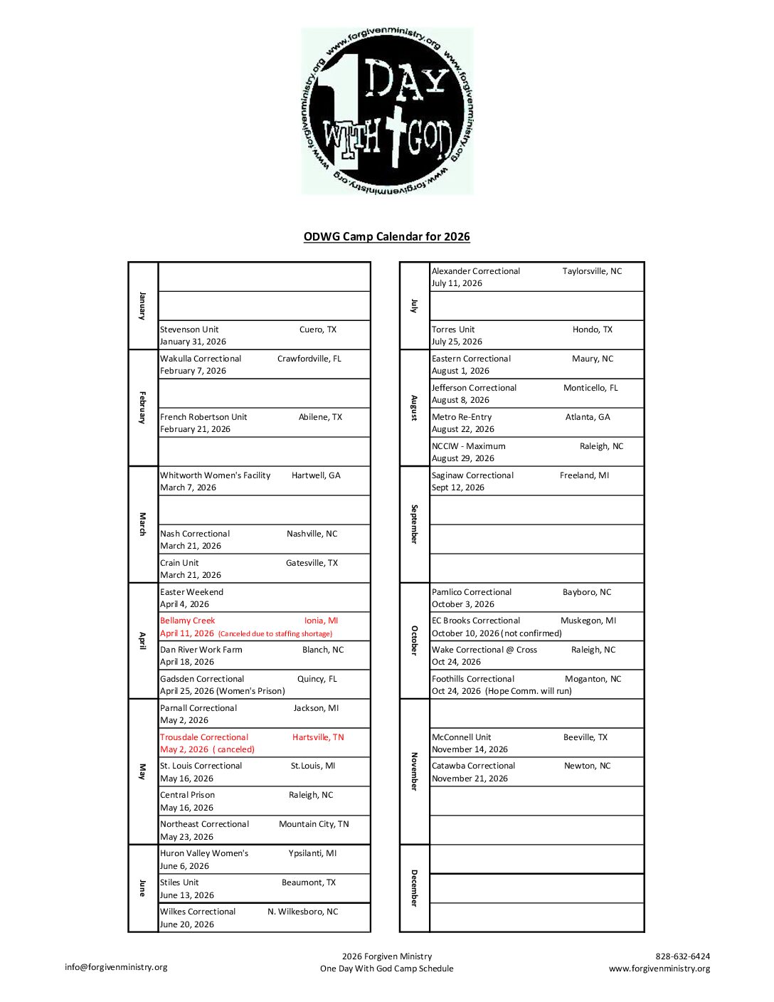 ODWG Camp Calendar
